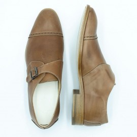 Sportlich elegante Schnallenschuh, beim dem die Schnalle seitlich angebracht ist. Dieser rahmengenähte Klassiker aus geschmeidigem Kalbsleder präsentiert sich in einer beigen Farbschattierung, diese verleiht ihm ein modernes Aussehen.