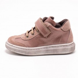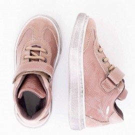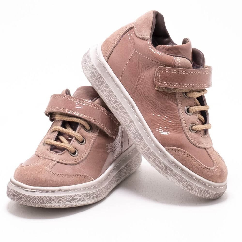 Dieser schöne Ledersneaker aus blassrosa Wild- und Lackleder ist warm gefüttert und passt gut zu Hosen sowie auch zum hübschen Kleidchen.