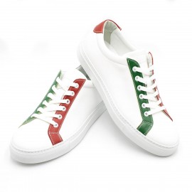 Diese Ledersneaker in der Farbe der italienischen Flagge, machen aus ihm etwas Aussergewöhnliches. Eine gekonnte Farbkombination in grün, weiss und rotem Glattleder, lässt das Herz von jedem Italien-Liebhaber höher schlagen.